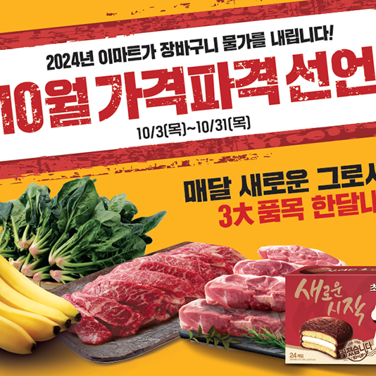 ‘시금치’ 이마트선 1팩 2980원… 정상가 대비 57% 싸다! 10월 가격파격 선언 개시이마트가 가을철 고객들의 장바구니 부담을 덜어줄 10월 ‘가격파격’ 행사를 시작한다. ‘가격파격’ 선언은 ‘장바구니 물가 안정’을 위해 필수 먹거리와 생필품을 최저가 수준으로 제공하겠다는 이마트의 ‘가격 투자형 프로젝트’다.