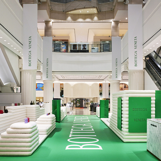 신세계백화점 강남점에서 이탈리아 럭셔리 브랜드 <보테가 베네타>의 아이코닉한 가죽 수공예 기법인 ‘인트레치아토’ 50주년을 기념하여 팝업을 선보인다. 1966년 장인들의 결합으로 시작된 보테가 베네타의 핵심 기법인 인트레치아토는 가죽 스트립을 정교하게 엮어낸 것이 특징이며 상호 연결성, 교류, 협업의 정신을 상징하기도 한다. 이번 팝업은