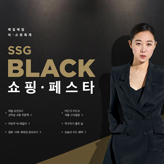 SSG닷컴, 최대 85% 할인 … ‘쓱 블랙 쇼핑 페스타’SSG닷컴이 16일부터 29일까지 2주간 ‘쓱 블랙 쇼핑 페스타’ 프로모션을 진행한다고 15일 밝혔다. SSG닷컴은 이번 행사를 할인 카테고리에 따라 크게 2회로 나눠 진행할 계획이다. 16일부터 22일까지는 패션과 뷰티, 스포츠, 유아동을 중심으로, 23일부터 29일까지는 가전, 생활, 식품 카테고리 상품 할인에 들어간다.
