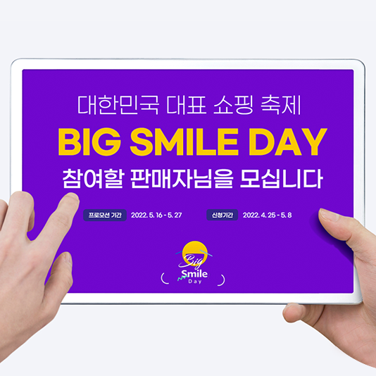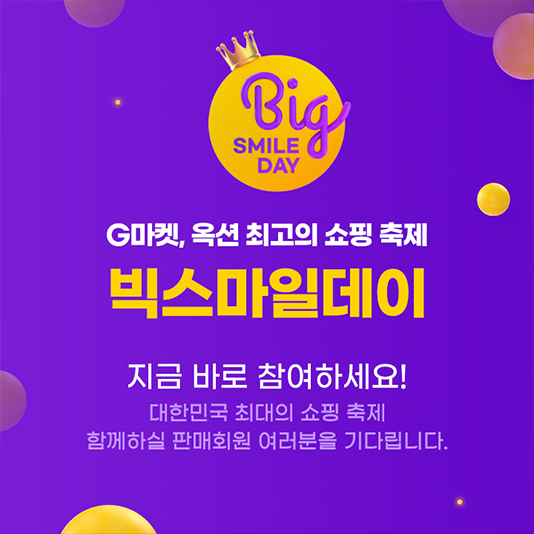 지마켓글로벌, ‘평소 매출 3배’… G마켓·옥션, ‘빅스마일데이’ 참여 셀러 모집국내 대표 온라인 마켓플레이스 G마켓과 옥션이 오는 5월 16일부터 27일까지 12일간 진행하는 연중 최대 쇼핑 축제 ‘빅스마일데이’를 앞두고 행사에 참여할 셀러를 5월 8일까지 공개 모집한다.