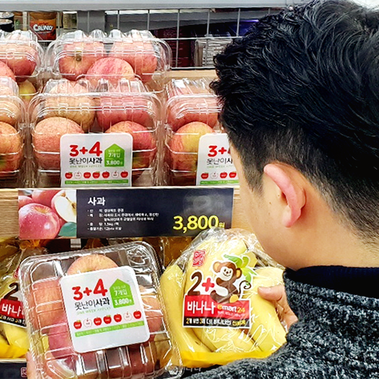 이마트24, 덜 빨개도 맛있어요! 개당 540원 사과도 출시!이마트24는 이달 27일(월) 3개 가격에 4개를 더 제공한다는 의미의 3+4 사과를 출시한다. ‘3+4 사과’ 1개당 가격은 543원으로 1입 세척사과 대비 58% 싼 가격이다.