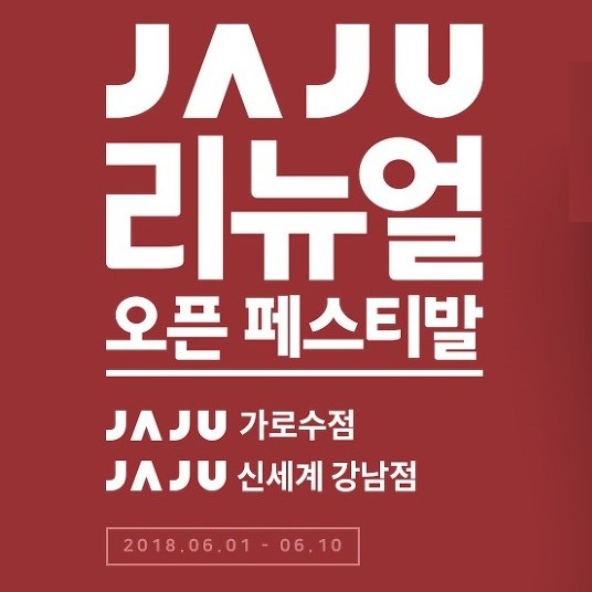 JAJU, 가로수점 리뉴얼 오픈 이벤트JAJU, 가로수점 리뉴얼 오픈 이벤트, 리뉴얼 오픈을 기념해 푸짐한 사은 행사를 진행한다.