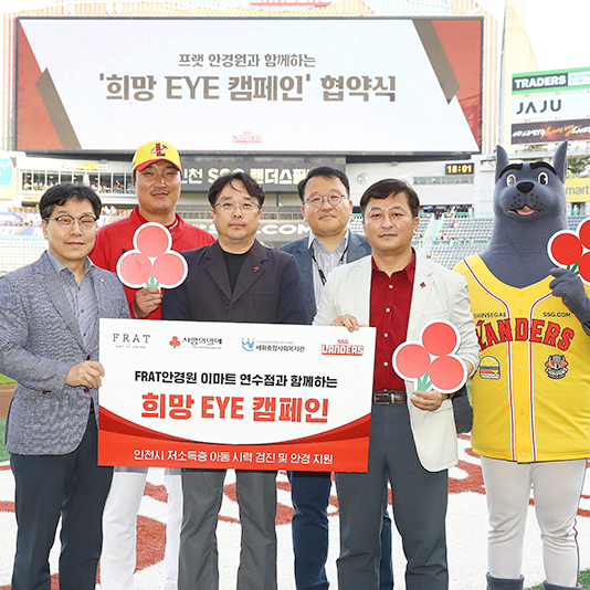 SSG랜더스, 프랫 안경원과 함께하는 ‘희망 EYE 캠페인’ 진행SSG랜더스(대표이사 민경삼, 이하 SSG)가 2일(금) 인천SSG랜더스필드에서 열린 키움히어로즈와의 홈경기에 앞서 프랫 안경원과 함께하는 ‘희망 EYE 캠페인’ 업무협약을 진행했다.