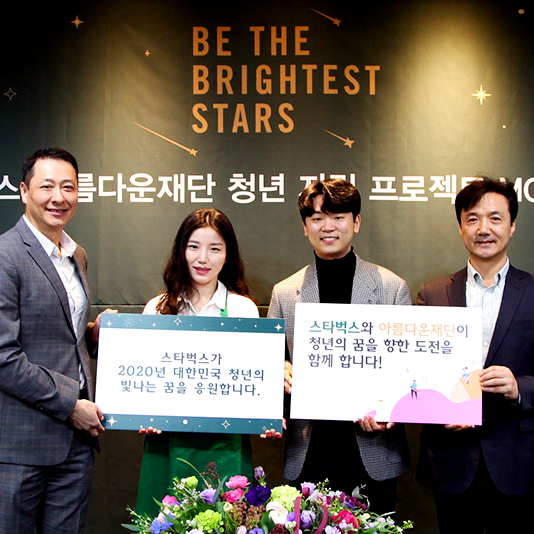 스타벅스, 아름다운재단과 ‘보호종료청년’ 지원 MOU 체결㈜스타벅스커피 코리아가 지난 8일 아름다운재단과 ‘보호종료청년’ 지원에 관한 협약식을 체결하며, 새해 첫 사회공헌활동을 개시했다. 스타벅스는 국내 기업 중 최초로 시설 퇴소 후 대학에 진학하지 않는 청년들의 사회진출을 보다 안정적으로 지원하기 위해 아름다운재단과 함께 이번 프로그램을 기획했다.
