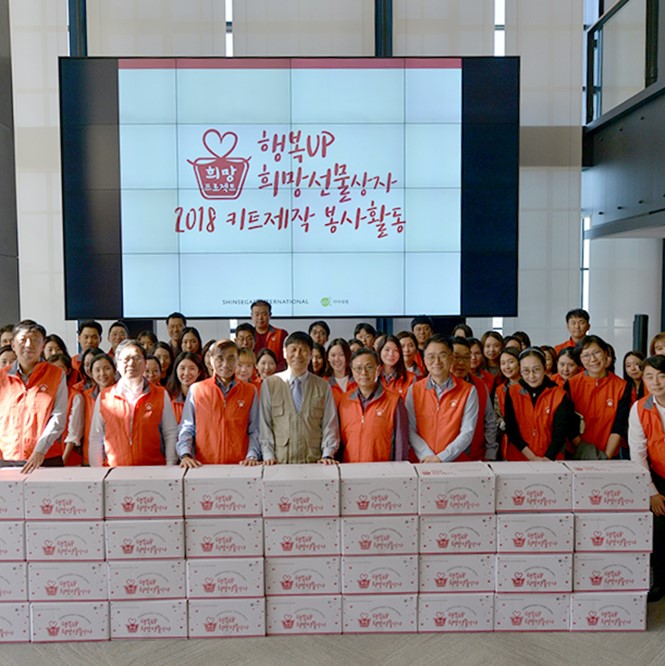 신세계인터내셔날은 청담동 본사에서 국제구호단체 기아대책과 함께 저소득층 가정 아동 240여 명을 위한 ‘행복업(UP) 희망선물상자’를 제작해 전달했다.