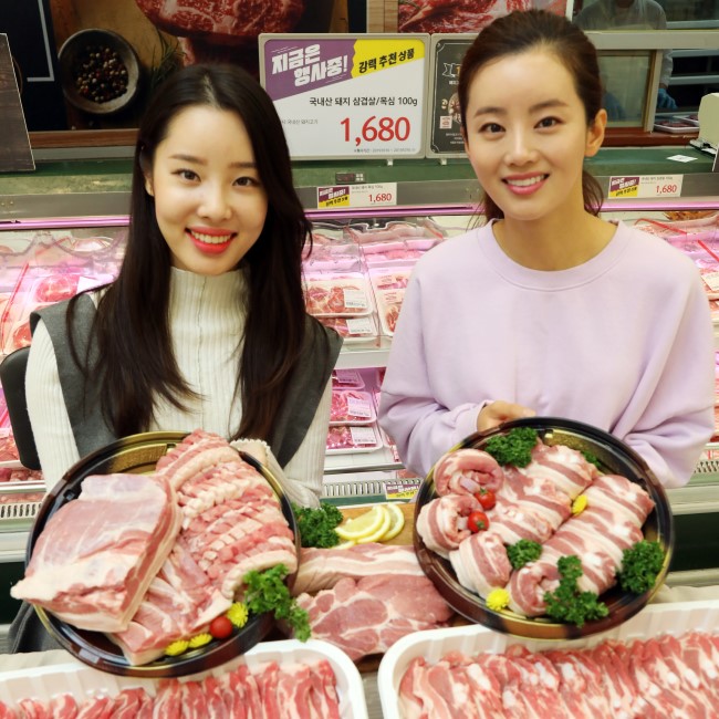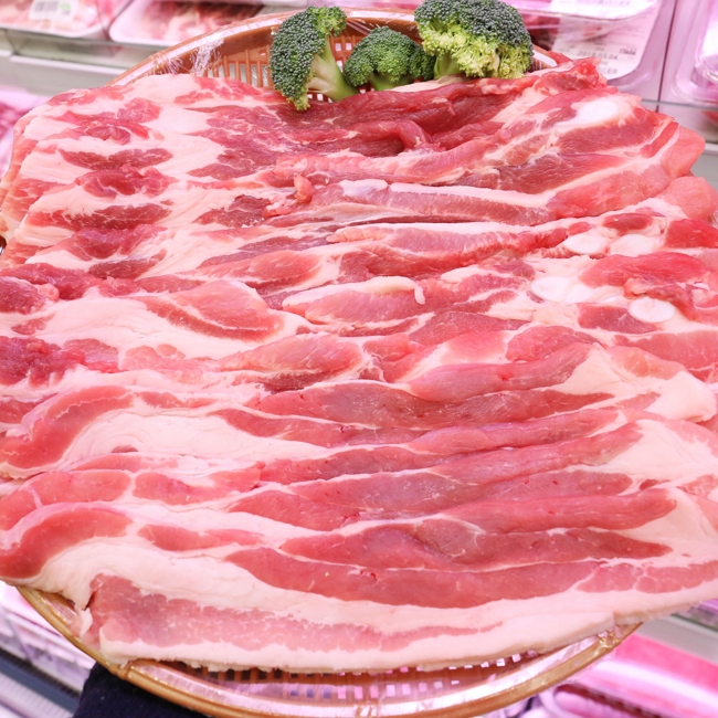 이마트 양돈농가 돕기 삽겹살 할인행사 진행이마트가 1등급 이상으로 선별한 국내산 냉장 삼겹살, 목살을 각각 기존 가격보다 15% 가량 저렴한 100g당 1,680원에 판매한다.