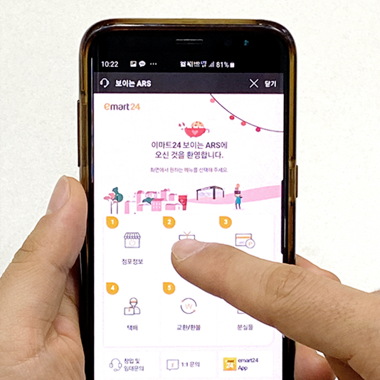 이마트24는 스마트폰 보급율이 95%에 달하는 통신환경에 맞춰 고객의 궁금증을 보다 직관적으로 해결할 수 있도록 ‘보이는 ARS’를 도입했다. 보이는 ARS는 단순 문의를 고객이 스마트폰을 통해 눈으로 확인하면서 보다 편리하고 정확하게 해결할 수 있도록 설계됐다.