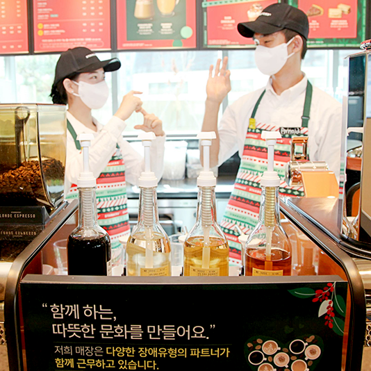 사람을 중시한다는 추상적인 표어나 선언은 흔하다. 그러나 그 선언을 현실로 증명해내 진정성을 드러내는 일은 절대 흔치 않다. “인간의 정신에 영감을 불어넣고 더욱 풍요롭게 한다. 이를 위해 한 분의 고객, 한 잔의 음료, 우리의 이웃에 정성을 다한다.” 스타벅스의 사명도 사람을 향한다. 그리고 고객은 국내 어느 스타벅스 지점을 가든 사명이 어떻게 실현되었는지 직접 체험할 수 있다. 사람 중심의 문화는 캠페인이나 분위기에서도 읽을 수 있지만, 이를 만드는 것은 모두 ‘사람’이다.