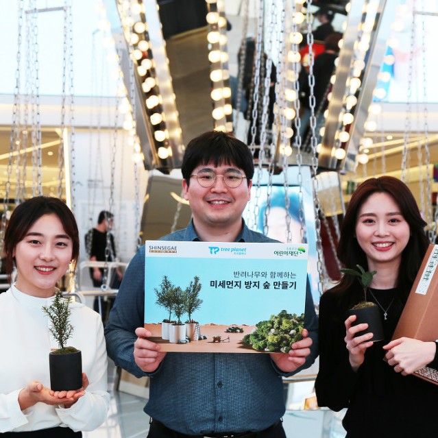 신세계면세점이 식목일을 앞두고 숲 조성 전문벤처 트리플래닛, 초록우산 어린이재단과 함께 미세먼지 방지 숲 조성 캠페인에 적극 동참한다.