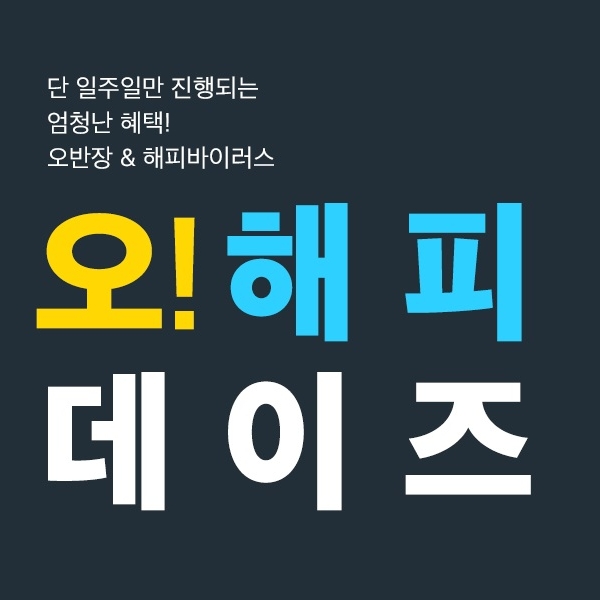 SSG닷컴, ‘오! 해피데이즈’!SSG닷컴은 오는 26일까지 일주일 간 오늘의 특가 대표 코너 ‘해피바이러스’와 ‘오반장’ 통합 프로모션을 진행한다고 20일 밝혔다.