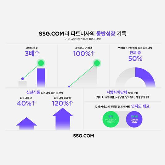 SSG닷컴, 온라인 판매 노하우 공유했더니 입점 파트너사 3년만에 3배 늘었다SSG닷컴이 ESG(환경·사회·지배구조) 경영을 강화하며 입점 파트너사와의 동반성장에 적극 힘쓰고 있다. SSG닷컴은 법인 출범 당시 19년 상반기 이후 3년만에 올 상반기 기준 입점 파트너사가 3배 늘었다고 3일 밝혔다. 전체 파트너사들의 총 거래액도 100% 가까이 증가했다. 특히, 전체 파트너사 중 연 매출 30억 이하 중소기업 비중이 절반을 넘어선 것으로 나타났다. 매년 수천 여 곳의 신규 파트너사를 유치해온 […]