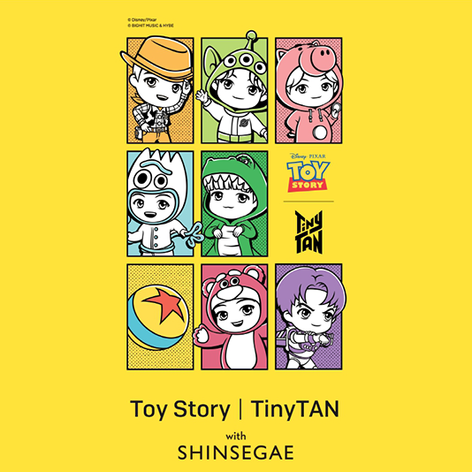 토이 스토리 옷 입은 타이니탄, 신세계百에서 만난다방탄소년단에 영감을 받아 만들어진 캐릭터 ‘타이니탄’과 애니메이션 명가 디즈니·픽사의 가 만나 탄생한 ‘토이 스토리 |타이니탄(Toy Story | TinyTAN)’캐릭터가 신세계백화점에 뜬다.