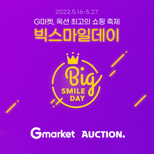 지마켓글로벌, G마켓·옥션, 할인축제 ‘빅스마일데이’ 오픈… 쇼핑 ‘신세계’ 열린다G마켓과 옥션이 진행하는 상반기 최대 쇼핑 축제 ‘빅스마일데이’가 16일부터 27일까지 총 12일 동안 진행된다. 이번 빅스마일데이는 신세계 그룹 편입 이후 처음 진행하는 것으로, 통합 멤버십 출범 이후 신세계그룹이 강조해 온 ‘온-오프 통합 에코시스템’을 가속화하는 통합 시너지의 또 다른 결과물이다.