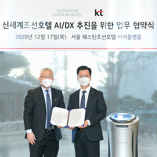 신세계조선호텔 & KT 업무 협약식 체결, 스마트 호텔을 위한 로봇 버틀러 서비스 도입!신세계조선호텔이 오픈 예정인 ‘조선 팰리스 서울 강남, 럭셔리 컬렉션 호텔’과 ‘그래비티 서울 판교, 오토그래프 컬렉션 호텔’의 AI 기반 디지털 혁신 서비스 제공을 위해 KT와 업무협약(MOU)을 체결한다.