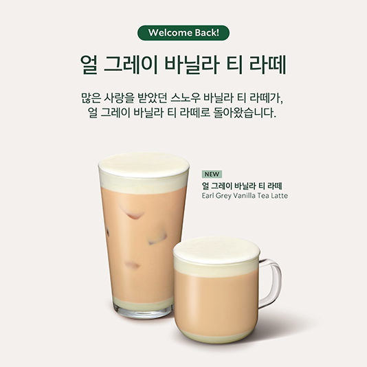 스타벅스, ‘얼 그레이 바닐라 티 라떼 음료의 비밀’스타벅스 코리아(대표이사 손정현)가 지난해 겨울 음료로 선보였던 ‘스노우 바닐라 티 라떼’를 ‘얼 그레이 바닐라 티 라떼’로 음료명을 변경해 1월 25일부터 상시 판매로 재출시한다.