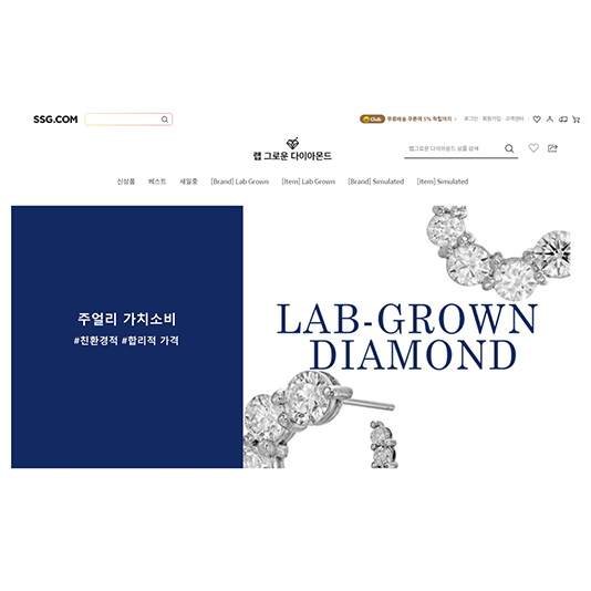 SSG닷컴, 다이아몬드 대중화 앞선다…‘랩그로운 다이아몬드’ 공식브랜드관 오픈SSG닷컴이 주얼리 가치소비 성향을 가진 MZ 세대를 공략하고 다이아몬드 대중화를 위해 ‘랩그로운 다이아몬드’ 카드를 꺼내들었다.