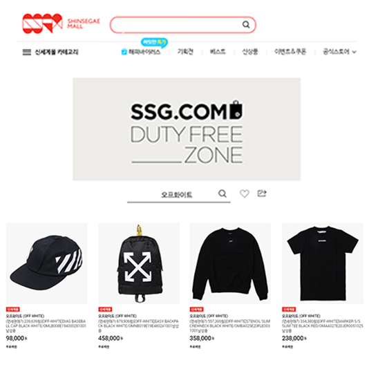 SSG닷컴이 오는 26일 오전 9시부터 다음달 10일 오전 9시까지 글로벌 패션 브랜드 ‘오프화이트’ 면세품 판매를 시작한다고 25일 밝혔다.