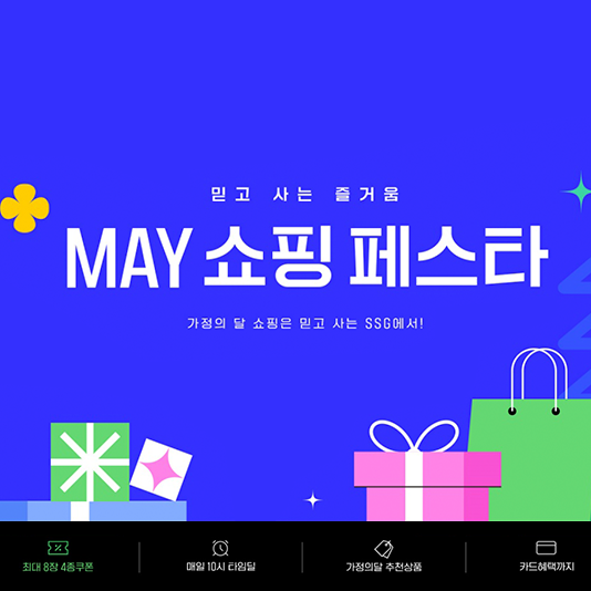 SSG닷컴, ‘MAY 쇼핑 페스타’ 개최… 가정의 달 맞아 5백억 물량 쏜다SSG닷컴이 가정의 달을 맞아 오는 1일부터 5일까지 ‘MAY 쇼핑 페스타’를 진행한다고 30일 밝혔다.