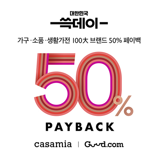 신세계의 리빙&라이프스타일 브랜드 까사미아가 오는 11월 1일까지 ‘굳닷컴(guud.com)’ 50% 페이백 등 연중 최고 혜택을 제공하는 쓱데이 특별 행사를 실시한다.