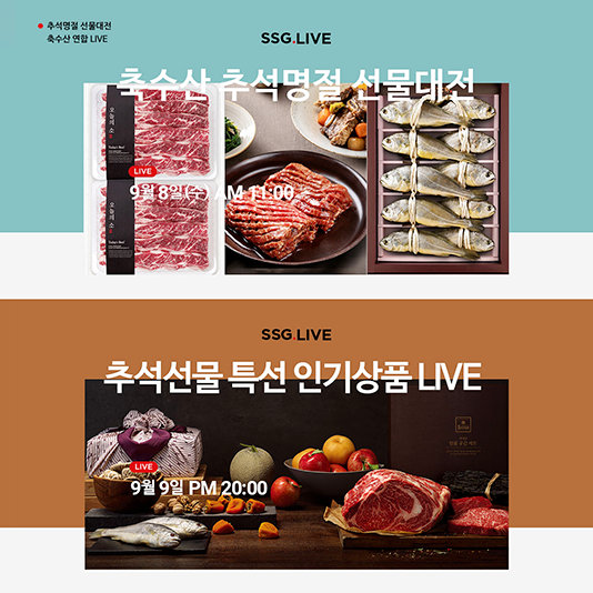 SSG닷컴, 추석 명절 선물세트 릴레이 라이브방송 진행SSG닷컴 단독 기획 ‘정담’, 이마트 신선 세트, 신세계백화점 프리미엄 세트 등 다양한 선물세트를 생동감 있게 소개하고 인기 상품을 최대 62% 할인한 파격 특가에 판매한다. 방송 시청 고객과 구매 고객에게는 사은품 및 상품권 추가 증정 등 풍성한 혜택을 제공할 계획이다.