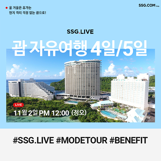 SSG닷컴, ‘괌 자유여행’, ‘파라다이스호텔 부산’ 라방 선봬백신 접종률이 높아진 후 해외여행 수요가 급증한 점과 지난달 진행한 ‘파라다이스시티’ 월간호캉쓱 라방 매출이 억대 기록을 세운 점을 고려해 여행 수요 공략에 적극 나선다는 방침이다. SSG닷컴은 2일 정오부터 자체 라이브커머스 ‘쓱라이브(SSG.LIVE)’에서 괌 해외 자유여행 상품을 판매한다고 밝혔다. 이어 4일 오후 8시부터는 매월 프리미엄 호텔 특가 상품을 소개하는 ‘월간호캉쓱’ 11월 테마로 ‘파라다이스호텔 부산’을 선정해 라이브방송을 진행한다.