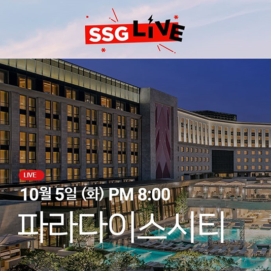 SSG닷컴, 매월 쓱라이브로 ‘월간호캉쓱’… 10월엔 5성급 ‘파라다이스시티’SSG닷컴이 하반기 라이브방송 킬러 콘텐츠로 ‘럭셔리 호텔’을 선보인다. 상반기 명품화장품에 이어 5성급 호텔을 대표 상품으로 선정해 한 번 더 ‘프리미엄’ 상품 콘텐츠를 강화하고 수요 공략에 나선다는 방침이다. 이번 달은 인천 영종도에 위치한 복합리조트 ‘파라다이스시티’를 선정했으며 오는 5일 오후 8시부터 라이브방송을 통해 전 객실 상품 판매에 나선다. 라이브방송 최초로 스위트룸부터 기본 객실까지 모든 객실 상품을 최대 67% 할인가에 준비했으며 SSG닷컴 단독으로 제공하는 혜택을 강화한 것이 특징이다.