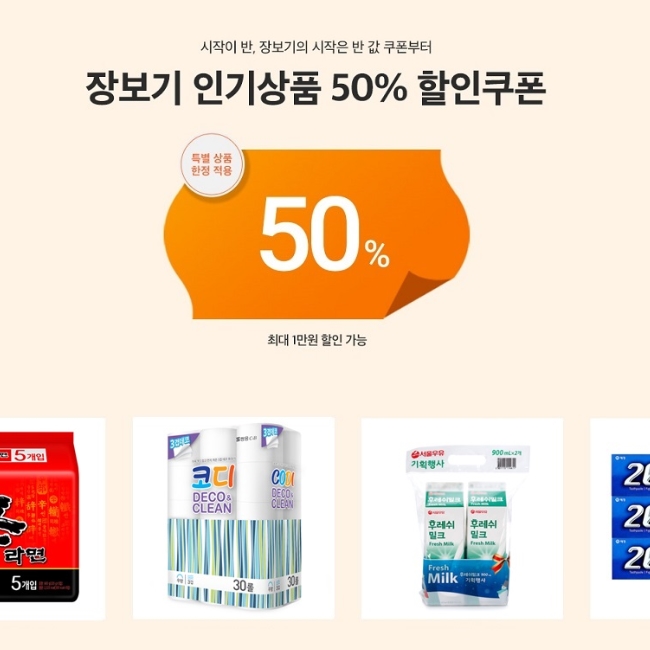 SSG닷컴은 이 달 말까지 이마트몰에서 첫 구매하는 고객을 대상으로 ‘장보기 인기상품 50% 할인 쿠폰’을 제공한다고 밝혔다.2019.06.17 -