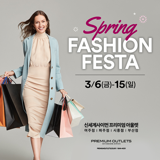 신세계사이먼 프리미엄 아울렛, ‘스프링 패션 페스타’ 개최신세계사이먼 프리미엄 아울렛이 ‘스프링 패션 페스타’를 개최한다. 이번 프로모션은 프리미엄 아울렛 전 점에서 동시에 개최되며, 다양한 카테고리의 봄 시즌 아이템들을 최초 정상가 대비 최고 80%를 할인된 합리적인 가격으로 만나볼 수 있다.