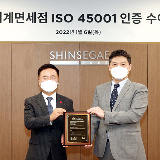 신세계면세점, ‘신세계디에프’ 안전보건경영시스템 국제표준(ISO45001) 인증 획득신세계디에프는 안전보건경영시스템 국제표준(ISO 45001) 인증을 획득했다.