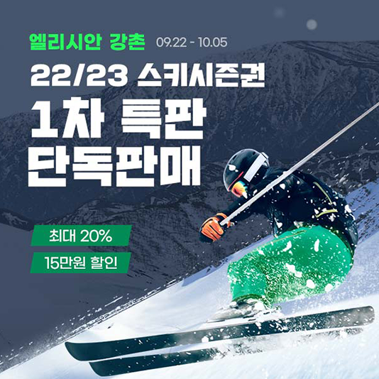 G마켓과 옥션이 다음달 9일까지 ‘22/23 스키 시즌권’을 얼리버드 혜택으로 온라인 단독 판매, 국내 주요 스키장 시즌권을 최대 20만원 할인가에 선보인다.