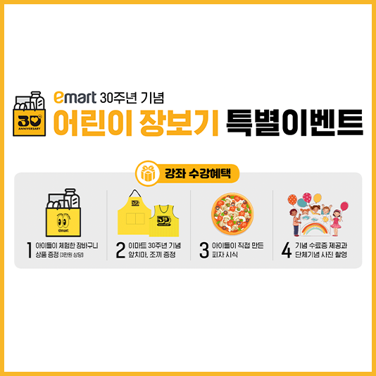 이마트 30주년 캠페인, 이번에는 ‘미래 고객’ 어린이 위한 이벤트창립 30주년을 맞은 이마트가 미래 고객인 키즈 고객 공략에 나선다.