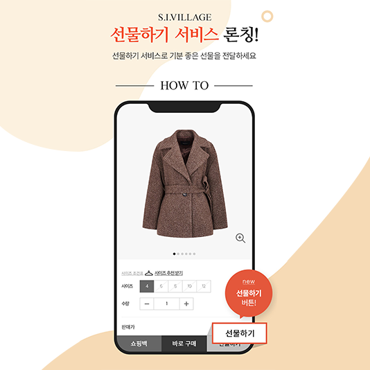 신세계인터내셔날, 온라인몰 에스아이빌리지에 ‘선물하기’ 서비스 론칭!신세계인터내셔날이 급성장 하고 있는 ‘비대면 선물하기’ 시장에 뛰어든다. 신세계인터내셔날은 이달 24일 자체 온라인몰 에스아이빌리지(S.I.VILLAGE)에서 ‘선물하기’ 서비스를 시작했다고 밝혔다.