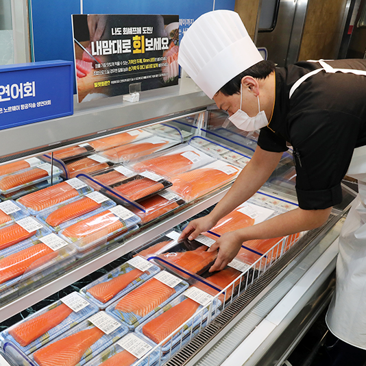 연어가 요동치는 가격에도 불구하고 수요는 나날이 높아지면서 이마트 바이어가 북극해까지 찾았다.
