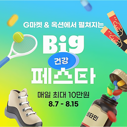 “멤버십은 무제한 10% 쿠폰”… G마켓∙옥션, ‘건강 빅페스타’국내 대표 온라인 마켓플레이스 G마켓와 옥션은 오는 15일까지 ‘건강 빅페스타’ 프로모션을 진행한다. 무제한 할인쿠폰 및 브랜드 중복쿠폰 등 파격적인 혜택을 선보인다.