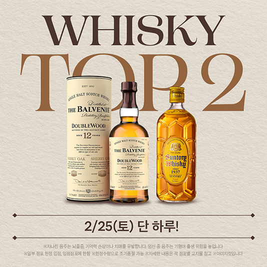 이마트가 지난 1월에 이어 약 7주만에 위스키 행사를 진행한다. 매장 판매는 25일(토) 하루 진행하며, ‘발베니 12년 더블우드(700ml)’ 1,200병을 이마트 52개점에서 11만원에, ‘산토리 가쿠빈(700ml)’ 8,400병을 이마트 직영전점에서 3만9800원에 판매한다.