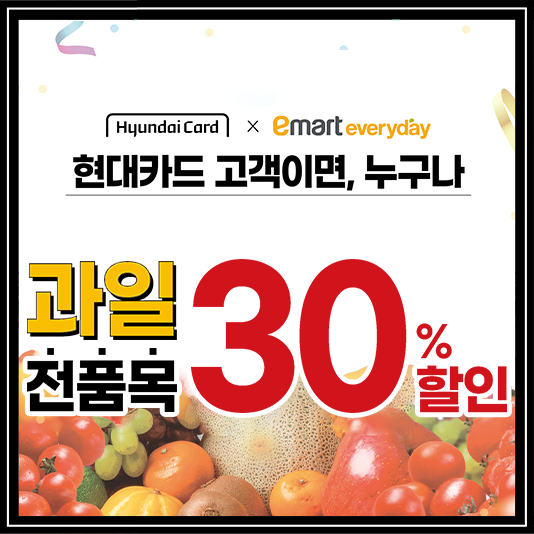 ㈜이마트에브리데이(대표이사 김성영)가 6월 22일부터 26일까지, 모든 현대카드 고객에게 과일 전 품목 30% 할인 혜택을 제공한다.