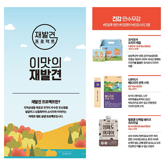 “이마트, 농촌진흥청과 ‘진흙 속 진주’ 찾는다” 지역 농산물 소개하는 ‘재발견 팝업스토어’ 오픈이마트와 농촌진흥청(이하 농진청)이 지역특산품을 발굴하고 육성하는 ‘재발견 프로젝트’의 첫 팝업스토어를 오픈한다.