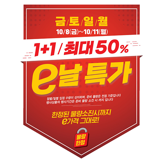 먼저, 이마트는 10/8일(금)부터 11일(월)까지 4일간 국내산 가을 햇 자연산 송이버섯(500g, 박스)을 행사카드 사용시 10만원 할인한 15만원에 판매한다. 자연송이 이외에 다른 가을 제철 식품도 풍성하게 준비했다. 10월 8일(금)부터 11일(월)까지 연휴동안 진행되는 ‘e날 특가’도 놓칠 수 없는 행사다.