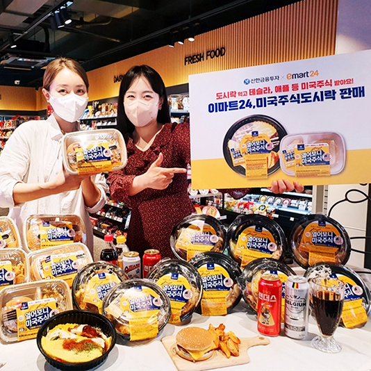 이마트24, 미국주식도시락 판매 시작!이마트24가 미국주식도시락을 판매한다. 이번에 선보이는 ‘열어보니 미국주식’(일명, 미국주식도시락)은 이마트24가 신한금융투자와 손잡고 기획한 상품으로, 테슬라, 마이크로소프트, 애플, 월드디즈니, 나이키, 코카콜라 등 12개 기업의 주식 중 1주를 랜덤으로 받을 수 있는 쿠폰이 동봉되어 있다.