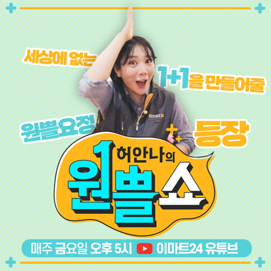 이마트24, 개그우먼 허안나와 함께 리얼 웹예능 ‘원쁠쇼’ 공개이마트24는 개그우먼 허안나와 함께 리얼 웹예능 ‘원쁠쇼’를 매주 공개하며 MZ세대와 소통한다. 이마트24는 지난 주 공식 유튜브 채널 ‘나는 emart24로 이렇게 산다’를 통해 자체 제작 웹예능 ‘원쁠쇼’ 티저 영상을 공개했다.
