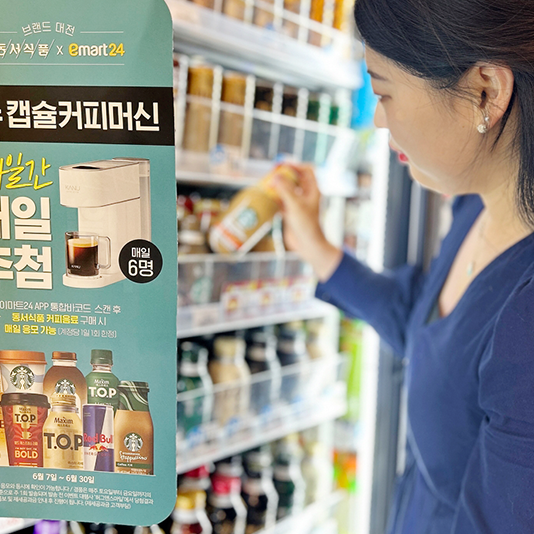 이마트24, 동서식품과 손잡고 매일 ‘카누 바리스타 커피머신’ 6대씩 쏜다이마트24가 동서식품과 손잡고 매일 커피 머신 6대씩, 총 144대를 선물하는 행사를 펼친다.