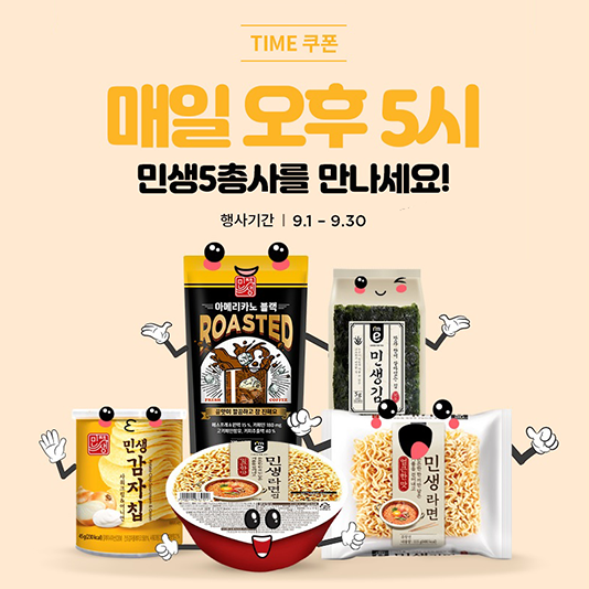 이마트24 공짜 마케팅! 이번엔 민생상품 그냥 준다!이마트24가 9월 한달 간 월요일부터 금요일까지 매일 선착순 1000명에게 주중(월~금) 오후 5시부터 이마트24 모바일 앱을 통해 민생상품 타임쿠폰을 증정하는 이벤트를 진행한다.