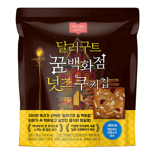 텍스트힙 트렌드… 책 속에 등장한 쿠키를 상품화! 이마트24X예스24, 달러구트 꿈 백화점 넛츠쿠키칩 선보여!이마트24가 문화콘텐츠 플랫폼 ‘예스24’와 협업해 이색 쿠키를 선보이고, 다양한 이벤트도 함께 진행한다.
