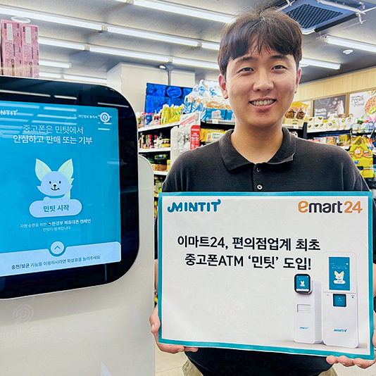 이마트24가 편의점업계 최초로 인공지능(AI)기반 중고폰 판매 ATM ‘민팃(MINTIT)’을 도입한다.