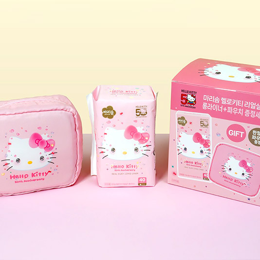 이마트24가 편의점업계 단독으로 헬로키티 50주년 기념 생리대 기획 한정 상품을 판매한다.