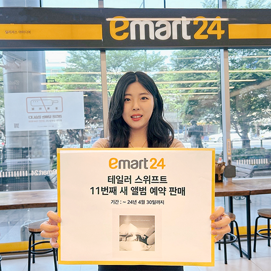 음반 주문처로 변신 중인 이마트24, 테일러 스위프트 11번째 정규앨범 예약 판매!편의점 이마트24가 테일러 스위프트(Taylor Swift)의 11번째 정규앨범 ‘더 토처드 포이츠 디파트먼트 (THE TORTURED POETS DEPARTMENT)’를 예약 판매한다.