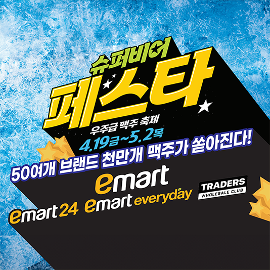 이마트, 이마트에브리데이, 이마트24 3사가 맥주 수요가 높아지는 본격적인 캠핑·나들이 철을 맞아 대형 맥주 행사인 ‘슈퍼 비어페스타’를 공동으로 진행한다.