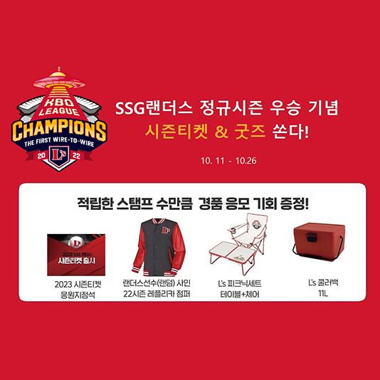 SSG닷컴은 12일부터 30일까지 프로야구단 ‘SSG 랜더스’ 정규시즌 우승을 기념해 고객 참여 이벤트를 진행한다고 밝혔다.