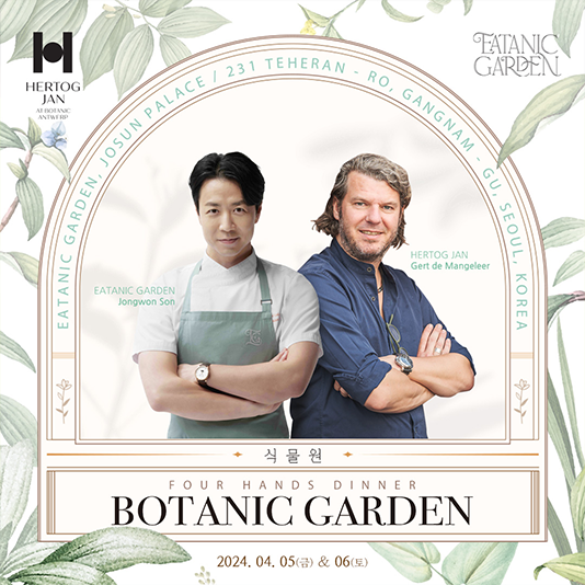 조선호텔앤리조트 조선 팰리스 ‘이타닉 가든’ x 벨기에 ‘헤르토흐 얀’ 두 미쉐린 레스토랑의 ‘식물원’ 콘셉트 포핸즈 갈라 디너조선호텔앤리조트의 최상급 호텔 ‘조선 팰리스 서울 강남, 럭셔리 컬렉션 호텔(이하 조선 팰리스)’의 미쉐린 레스토랑 ‘이타닉 가든(Eatanic Garden)’이 벨기에 미쉐린 레스토랑 ‘헤르토흐 얀(Hertog Jan)’과 함께 4월 5일(금)과 4월 6일(토) 양일에 걸쳐 포핸즈 갈라 디너를 개최한다.