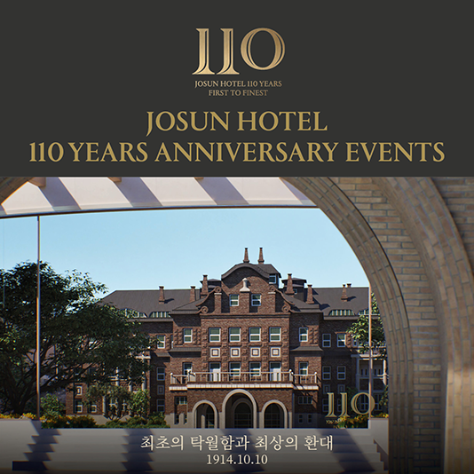 1914년 10월 10일부터 시작된 110년의 헤리티지! 조선호텔앤리조트, 110주년 기념 고객 감사 이벤트조선호텔앤리조트가 오는 10월 10일, 개관 110주년을 축하하며 ‘최초의 탁월함과 최상의 환대’의 의미를 담은 ‘퍼스트 투 파이니스트(First to Finest)’라는 슬로건 아래, 고객 감사의 의미를 담아 온라인 채널 및 오프라인 이벤트, 특별 전시 등 다양한 이벤트를 선보인다.